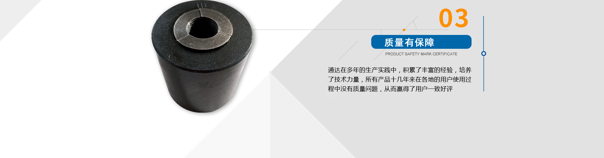 点击查看平原县通达机械有限公司坐落在平原县工业园区内,省道101、315交接处,交通便利,地理位置,公司历史悠久,注册资金3000万元,我公司生产锚具、矿用锚具、螺纹钢锚具、预应力锚具的各种锚具型号,现有6种型号的矿用产品安全标志证书KM15、KM18、KM19(1860),KM22(1770)、KM22(1860),KM29(1670)公司拥有现代化锚具生产加工设备、热处理设备及质量检测设备,全程工艺自主生产,从而保证了产品质量的把关。我公司在多年的生产实践中,积累了丰富的经验,培养了技术力量...[查看更多]